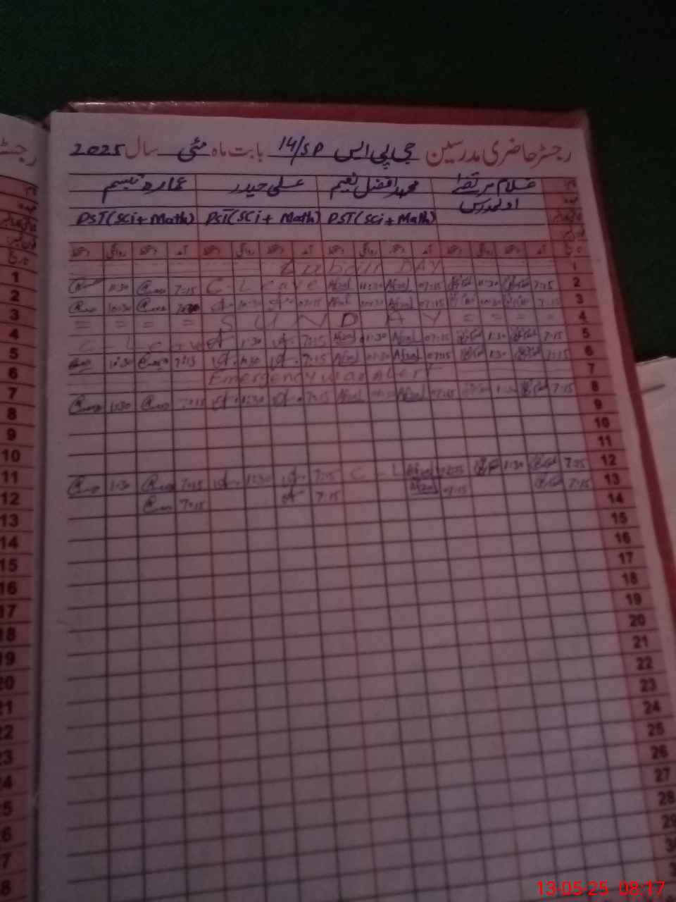 | CNIC | Full Name | Designation | R/C | Absence During Last Calender Month |