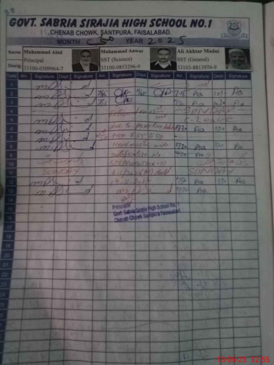 | Name: AL**** AK**** MA**** Designation: (School Headmaster's/Headmistress's) SST (INCHARGE) Phone/Cell Number: 03**** |