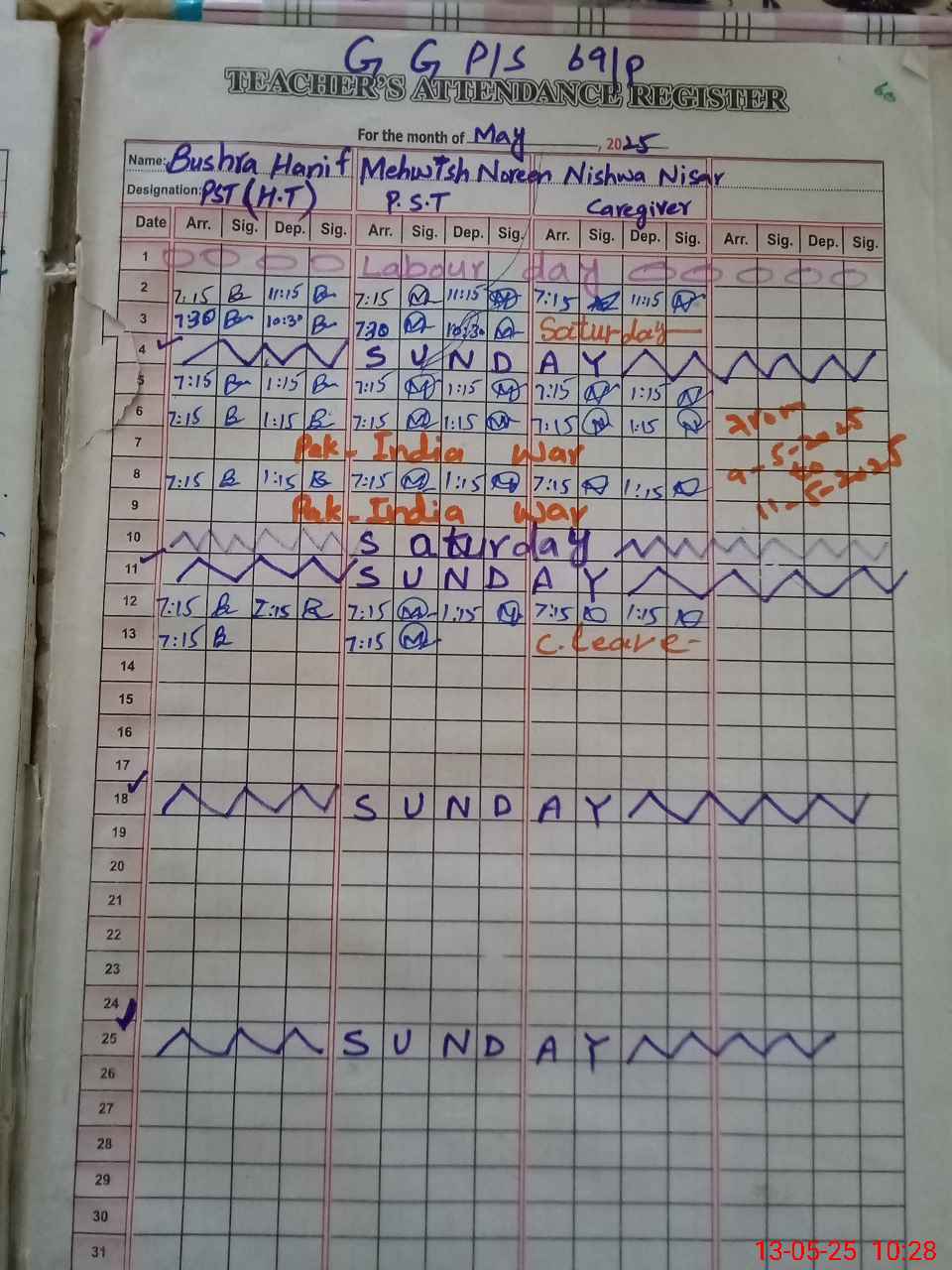 | Name: BU**** HA**** Designation: (School Headmaster's/Headmistress's) PST Phone/Cell Number: 03**** |