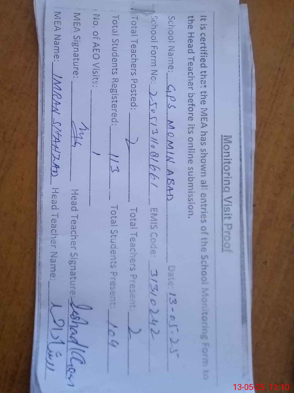 | EMIS Code: 31310242 | Name of School: GPS MOMAN ABAD | |||