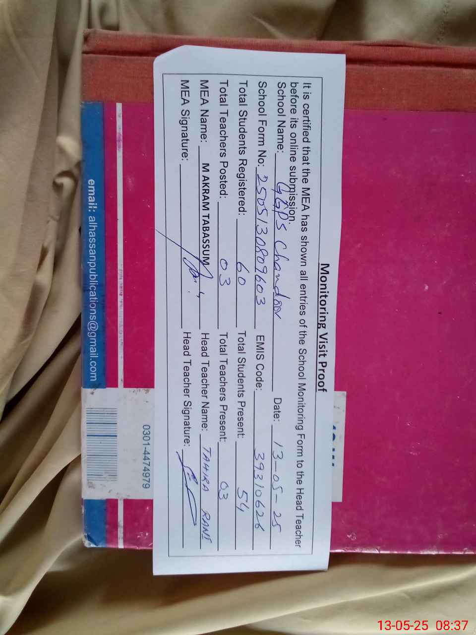| EMIS Code: 39310626 | Name of School: GGPS CHANDOOR VIA BASEER PUR | |||