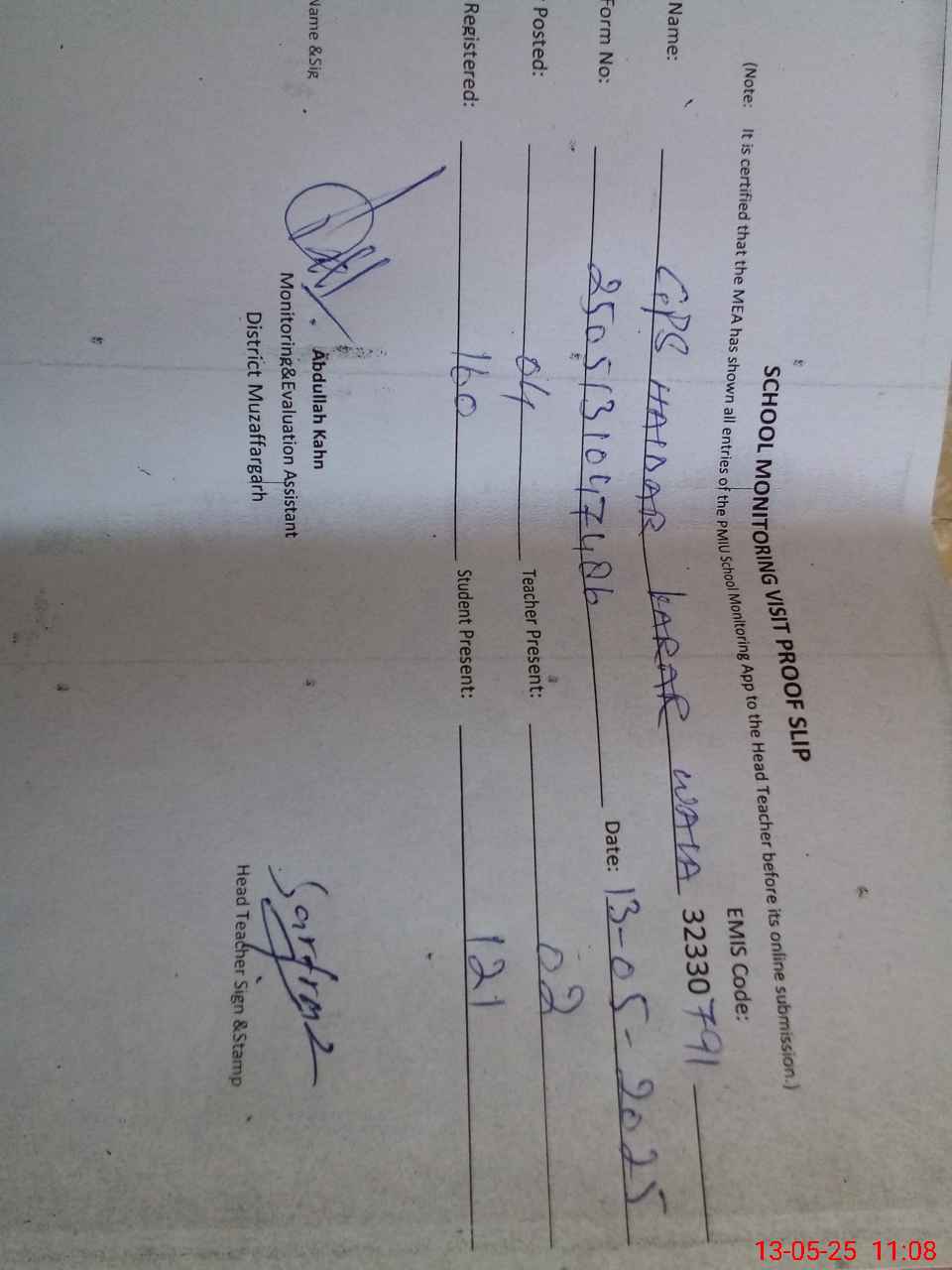 | EMIS Code: 32330791 | Name of School: GPS HAIDER KARAR WALA | |||