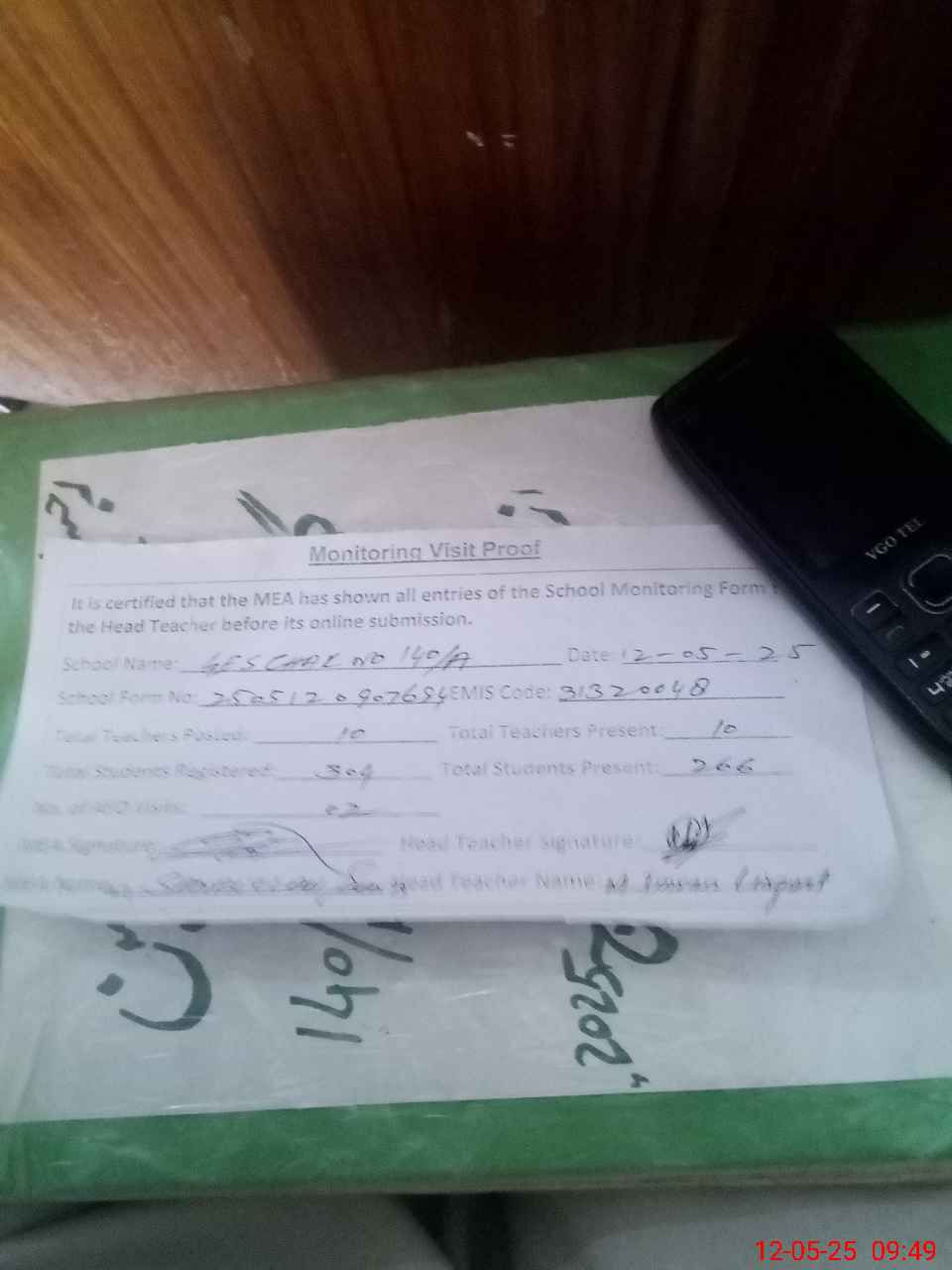 | EMIS Code: 31320048 | Name of School: GES CHAK NO.140-A | |||