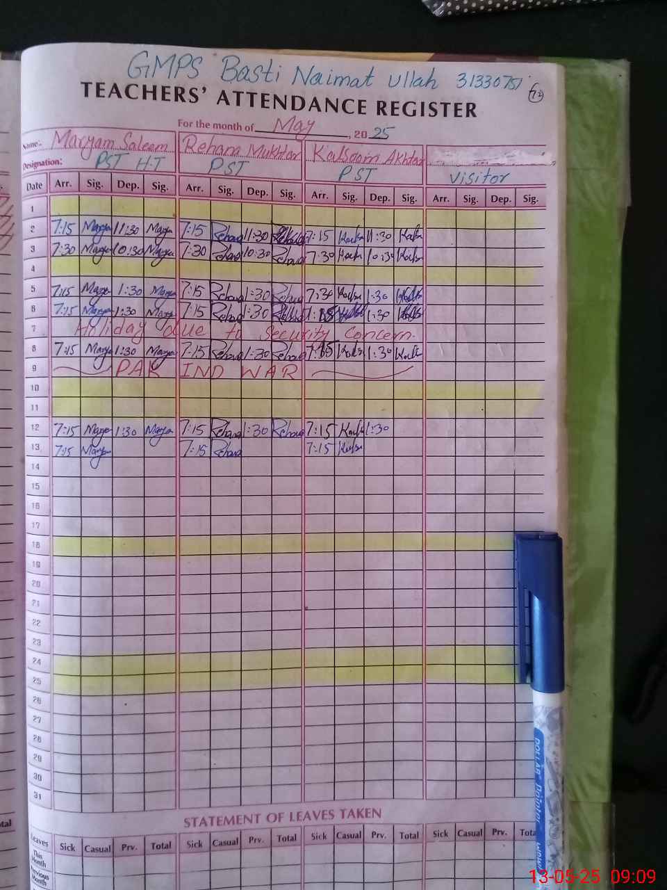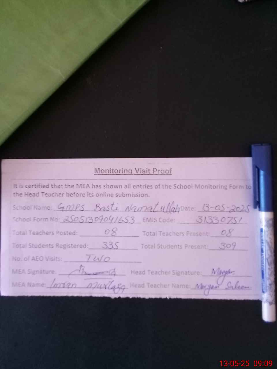| Attendance Register | Head Teacher | MEA with School | Visit Proof |