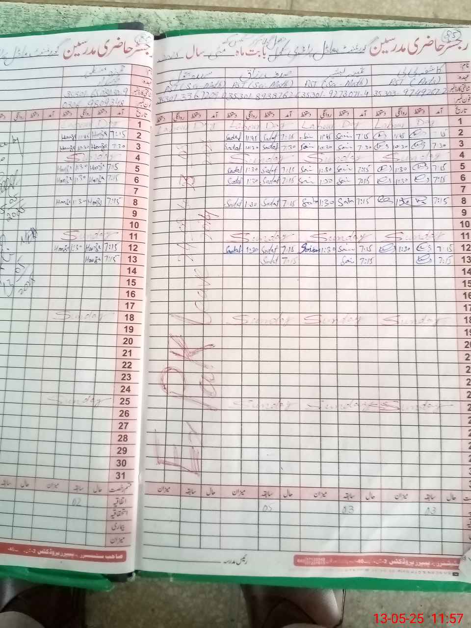| CNIC | Full Name | Designation | R/C | Absence During Last Calender Month |