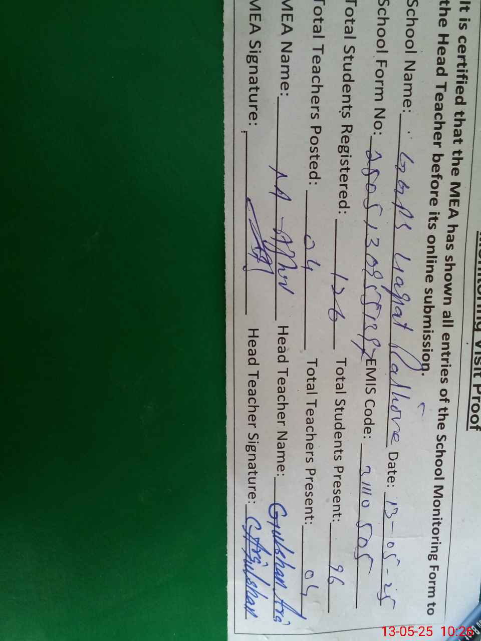 | Certified that this School was Inspected by the Undersigned MEA/DMO Today and the Information Stated Above is as Per Record. | |||||