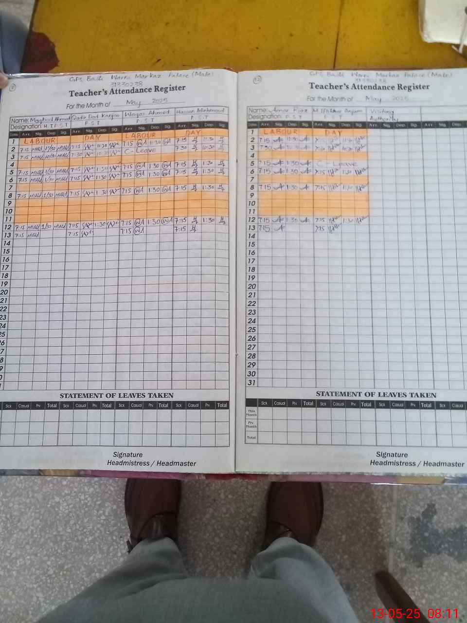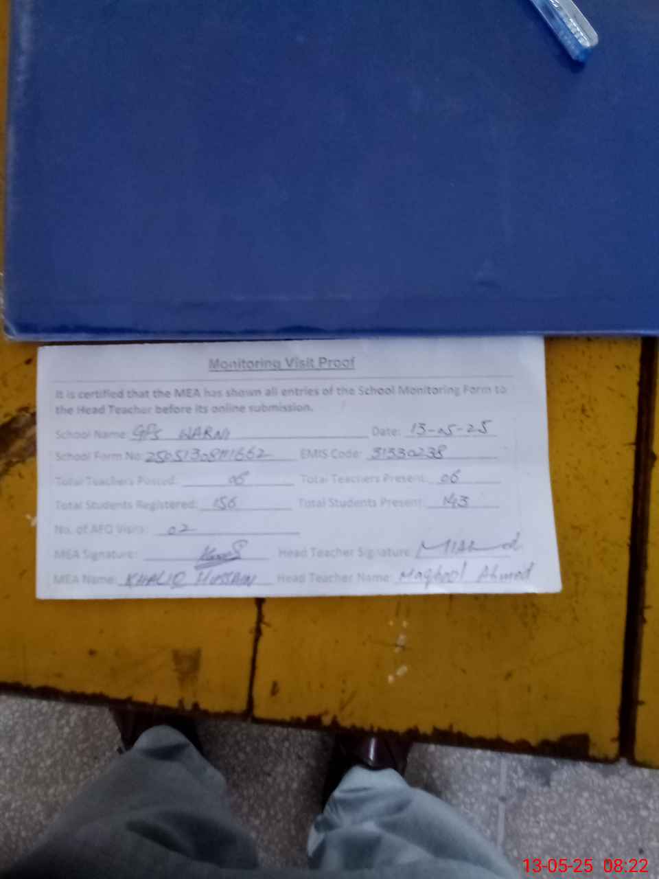 | Attendance Register | Head Teacher | MEA with School | Visit Proof |