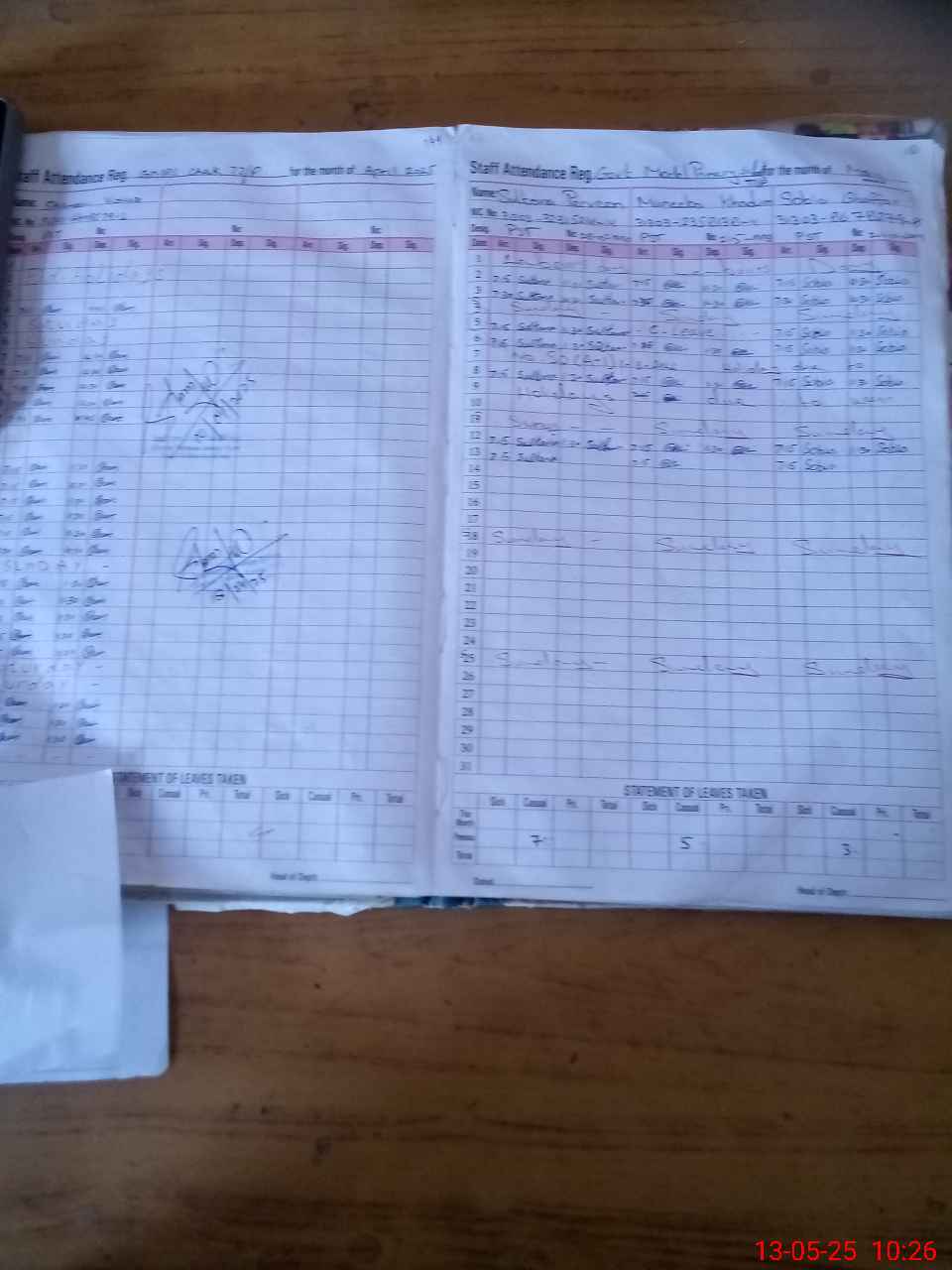 | CNIC | Full Name | Designation | R/C | Absence During Last Calender Month |
