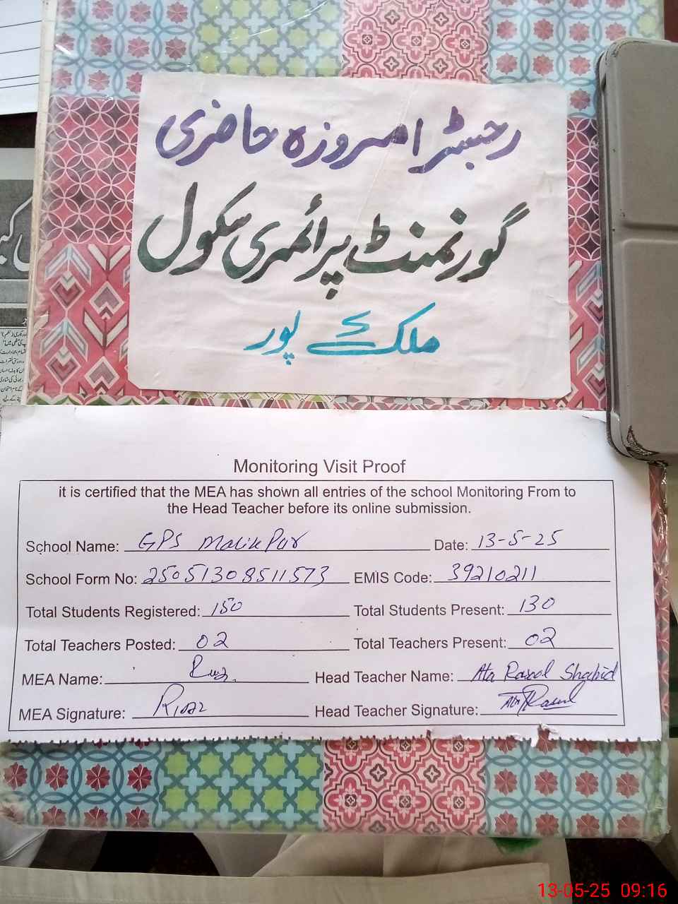 | EMIS Code: 39210211 | Name of School: GPS MALIK PUR PO PAKPATTAN | |||