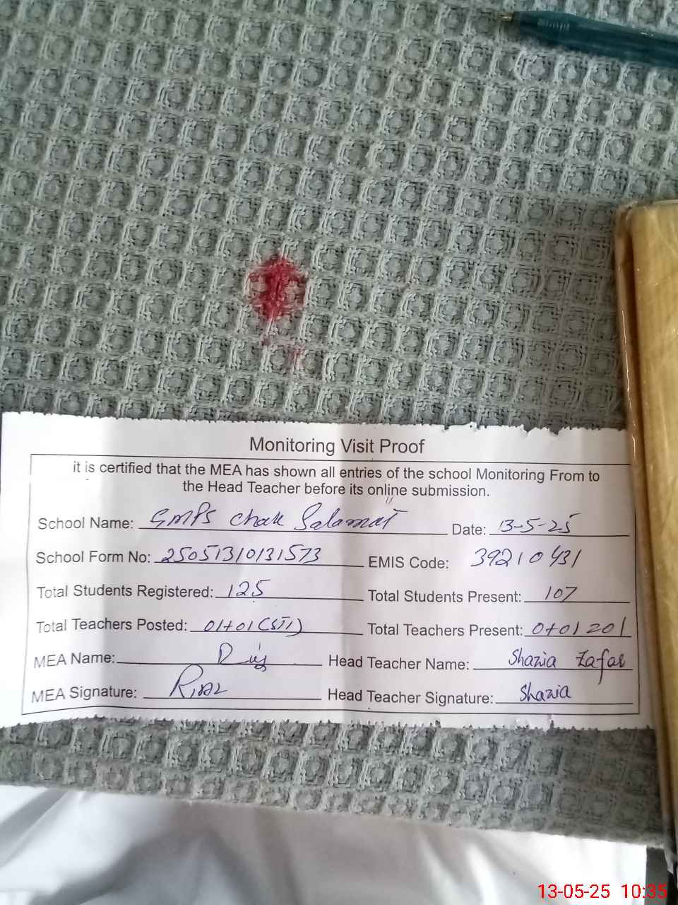 | EMIS Code: 39210431 | Name of School: GMPS CHAK SALAMAT | |||