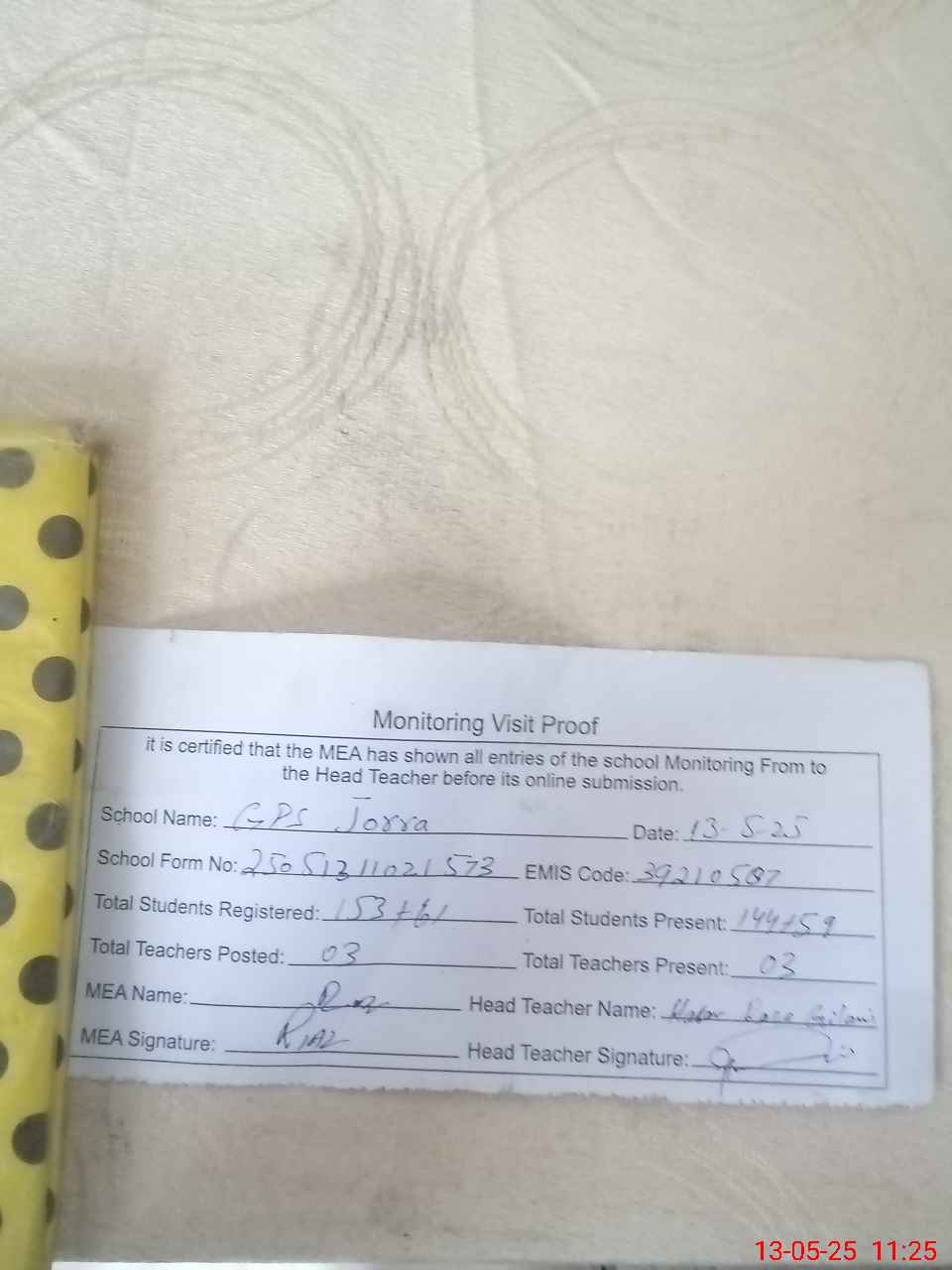 | EMIS Code: 39210587 | Name of School: GPS JORRA | |||