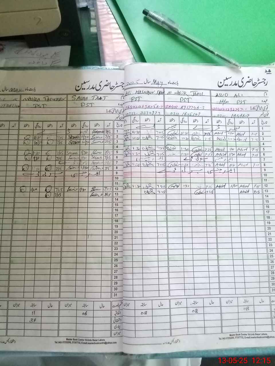 | CNIC | Full Name | Designation | R/C | Absence During Last Calender Month |