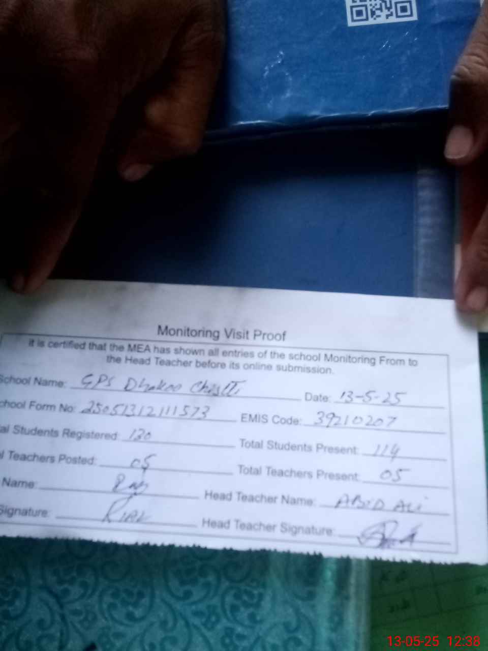| Attendance Register | Head Teacher | MEA with School | Visit Proof |