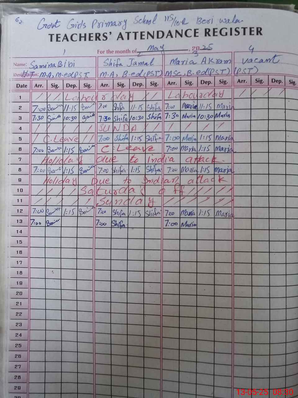 | Name: Sa**** Bi**** Designation: (School Headmaster's/Headmistress's) PST Phone/Cell Number: 03**** |