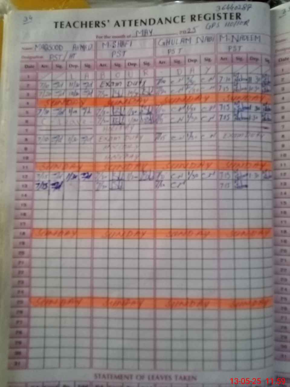 | CNIC | Full Name | Designation | R/C | Absence During Last Calender Month |