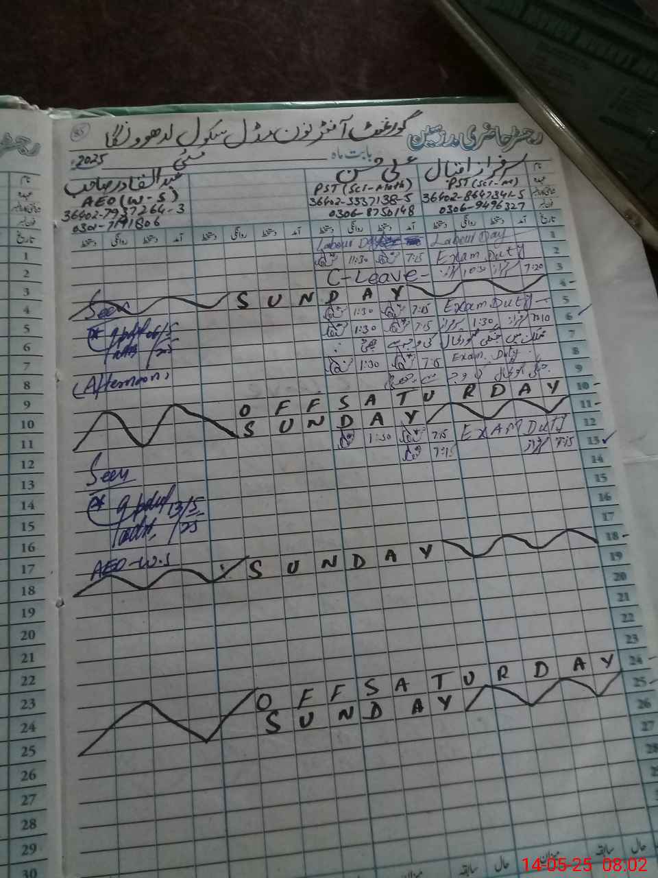 | 36**** | Mu**** Sa**** Iq**** | PST | Regular | 0 | 1 | 0 | 0 | 0 | 0 | 0 | 0 | 0 | Exam Duty |
