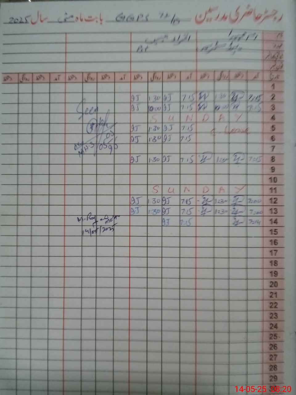 | CNIC | Full Name | Designation | R/C | Absence During Last Calender Month |