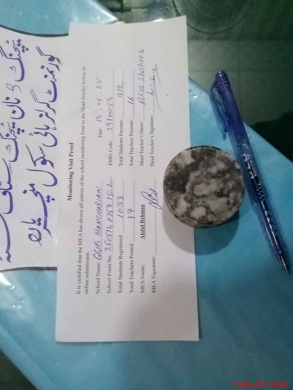 | Attendance Register | Head Teacher | MEA with School | Visit Proof |