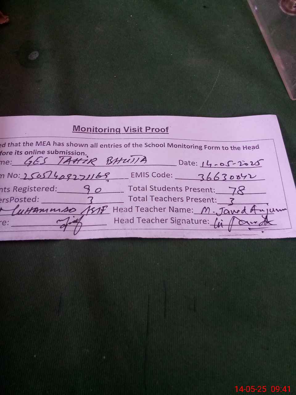 | EMIS Code: 36630042 | Name of School: GES TAHIR BHUTTA | |||