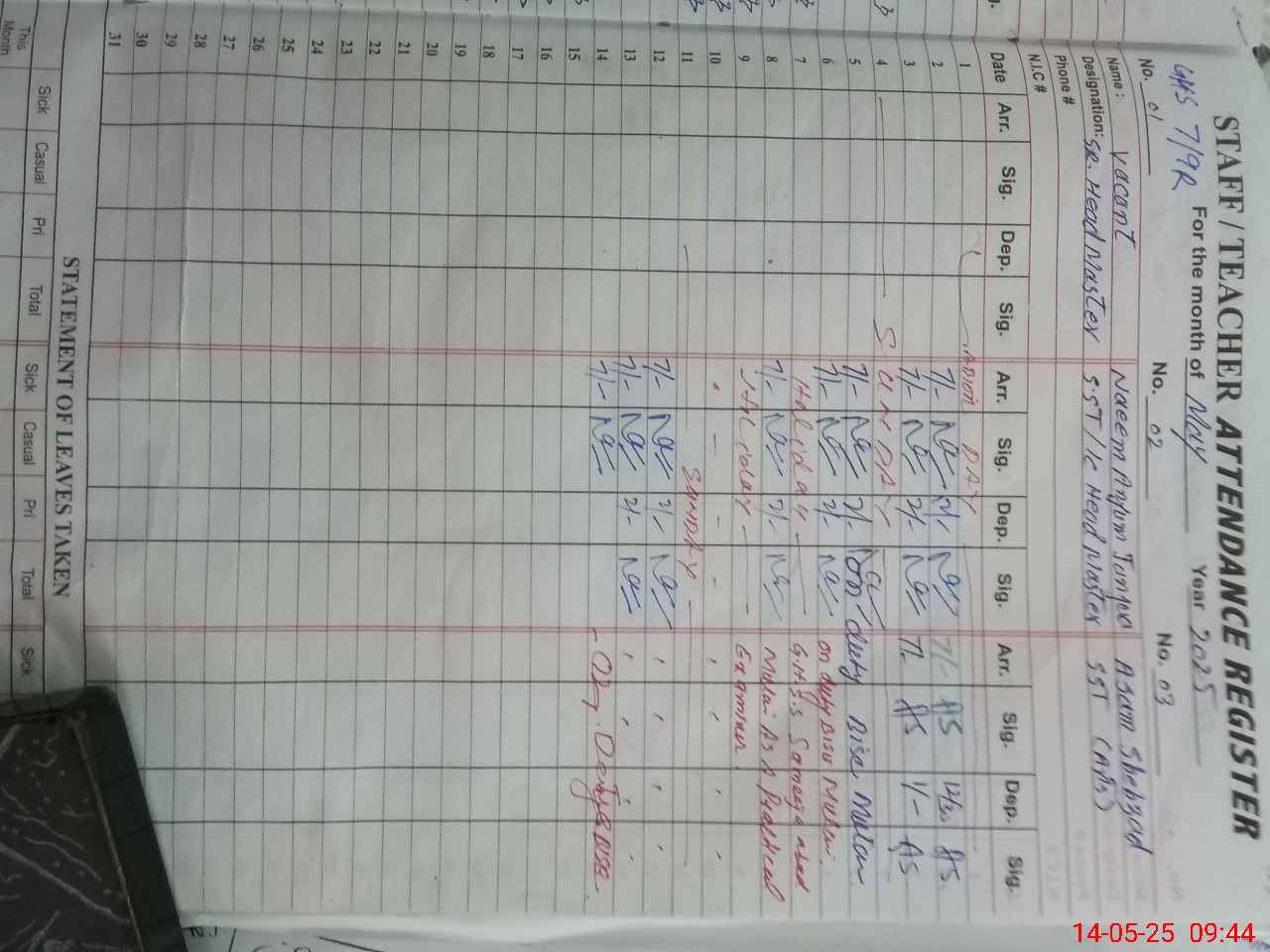 | 36**** | As**** Sh**** | SST | Regular | 0 | 0 | 0 | 0 | 0 | 0 | 0 | 0 | 0 | Exam Duty |