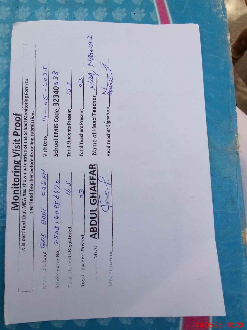 | EMIS Code: 32340038 | Name of School: GPS BASTI GHAZAN | |||