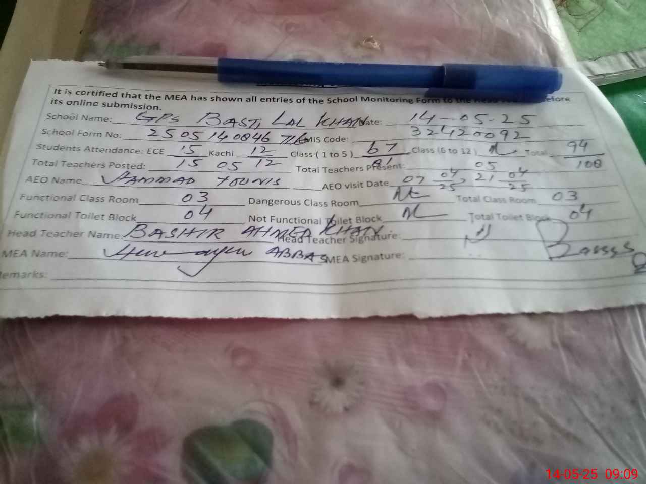 | EMIS Code: 32420092 | Name of School: GPS BASTI LAL KHAN | |||