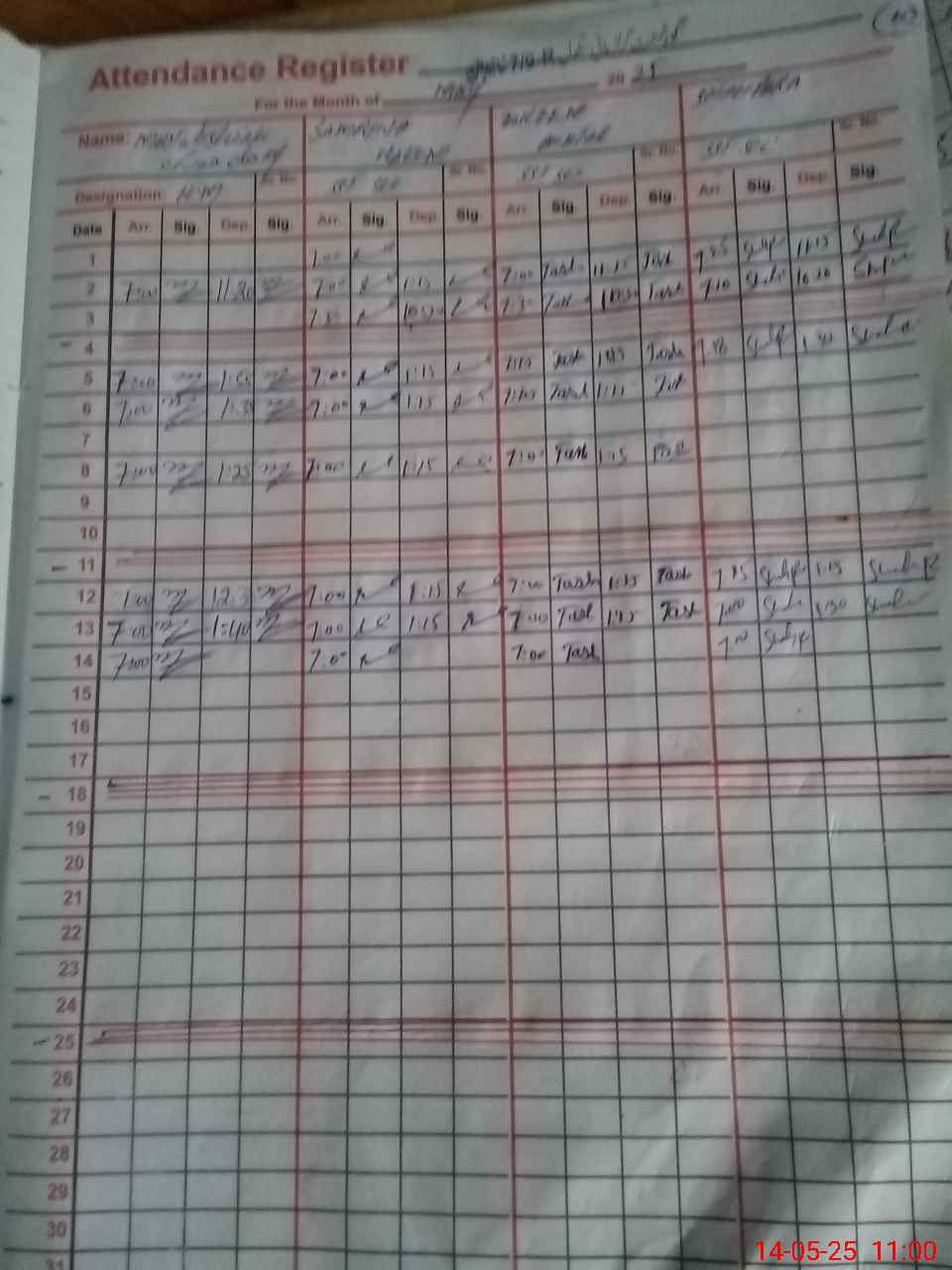 | 36**** | Si**** Na**** | 3 | 1 | 0 | 0 | 0 | 0 | 0 | 0 | 0 | 0 | 0 | Exam Duty |