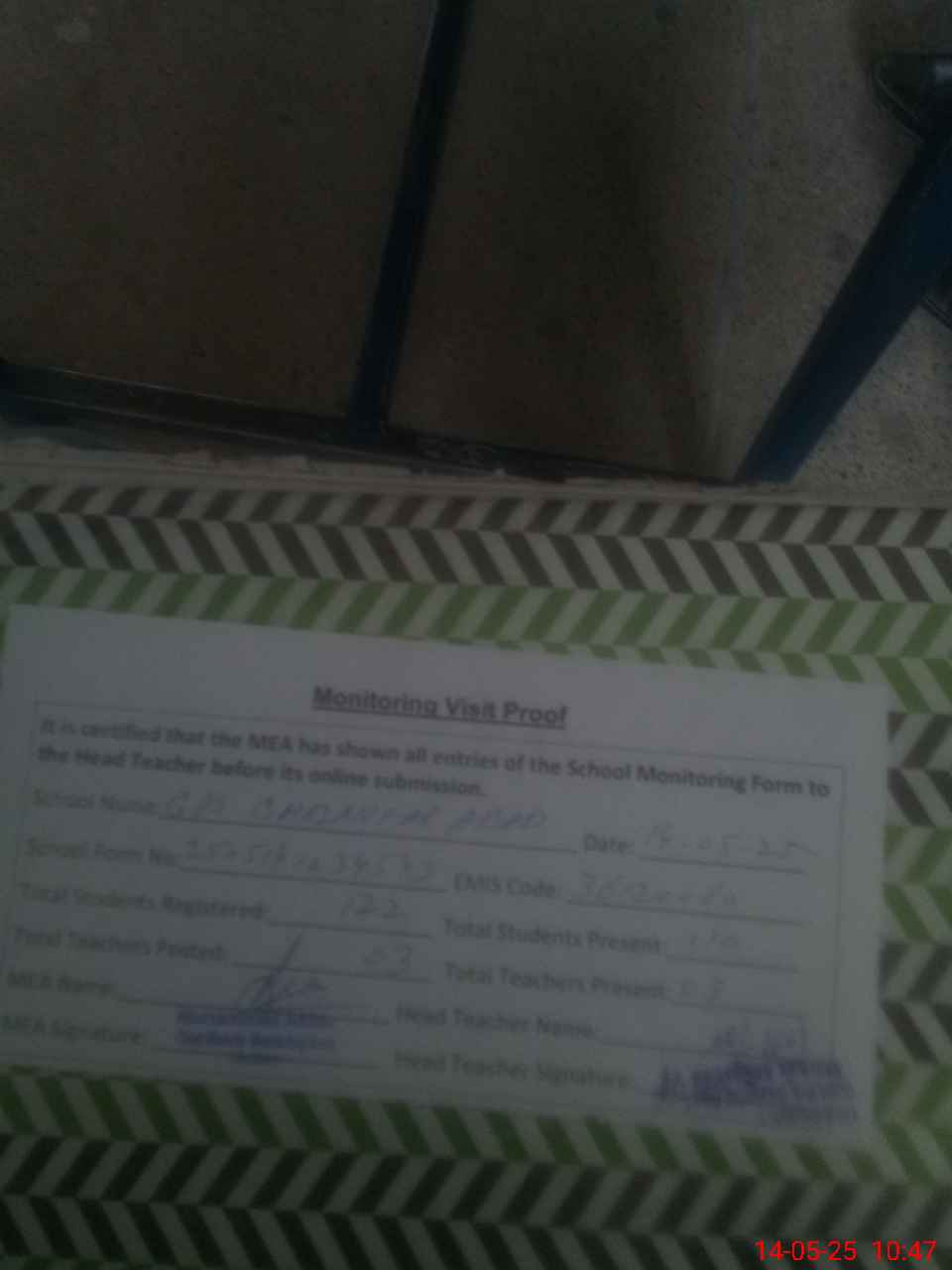 | Certified that this School was Inspected by the Undersigned MEA/DMO Today and the Information Stated Above is as Per Record. | |||||