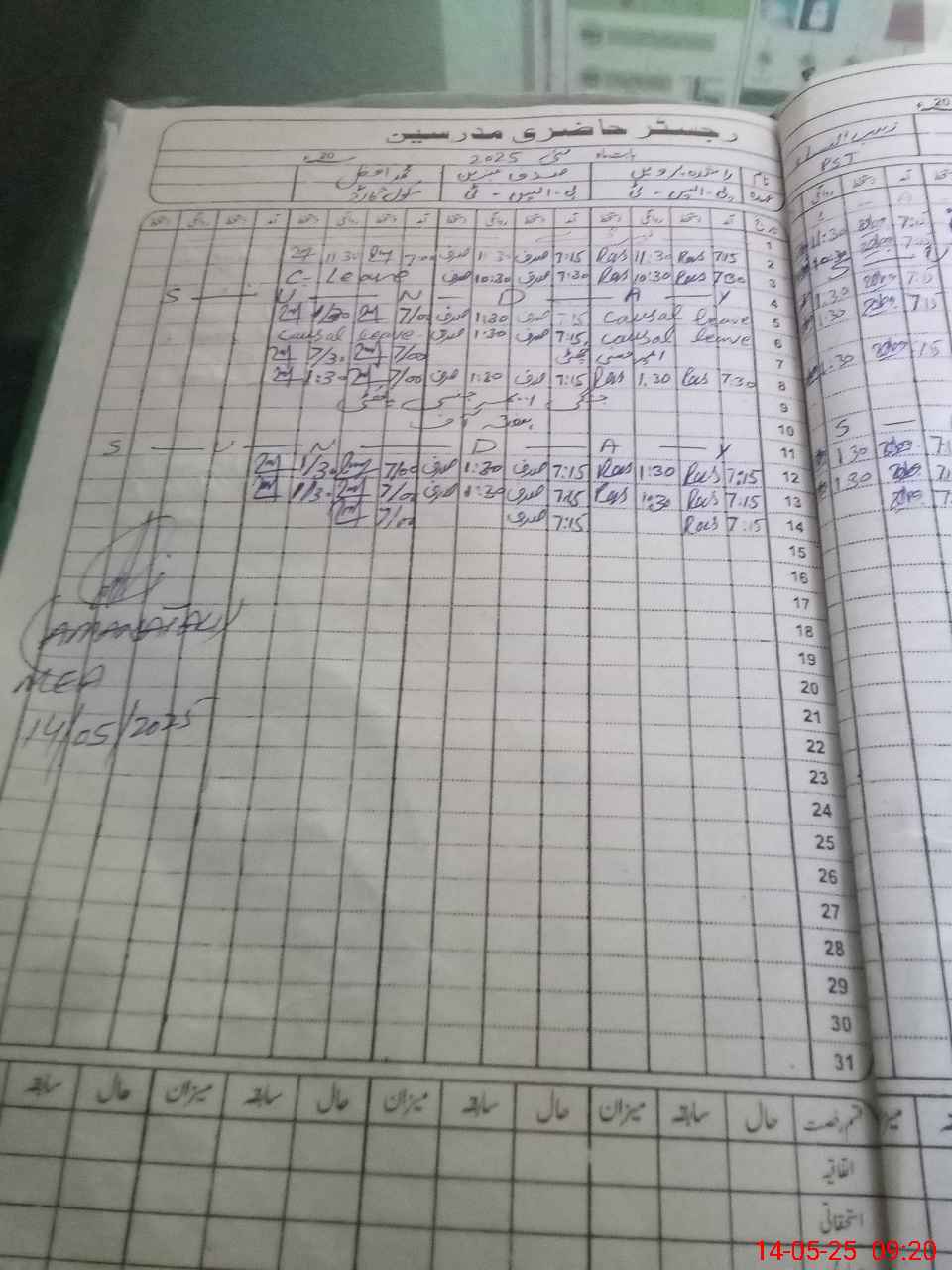| CNIC | Full Name | Designation | R/C | Absence During Last Calender Month |