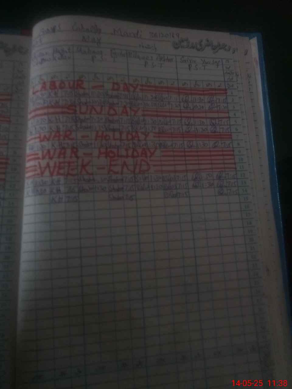 | Leave | Duty | Absent | Maternity | Medical | Ex- Pak |