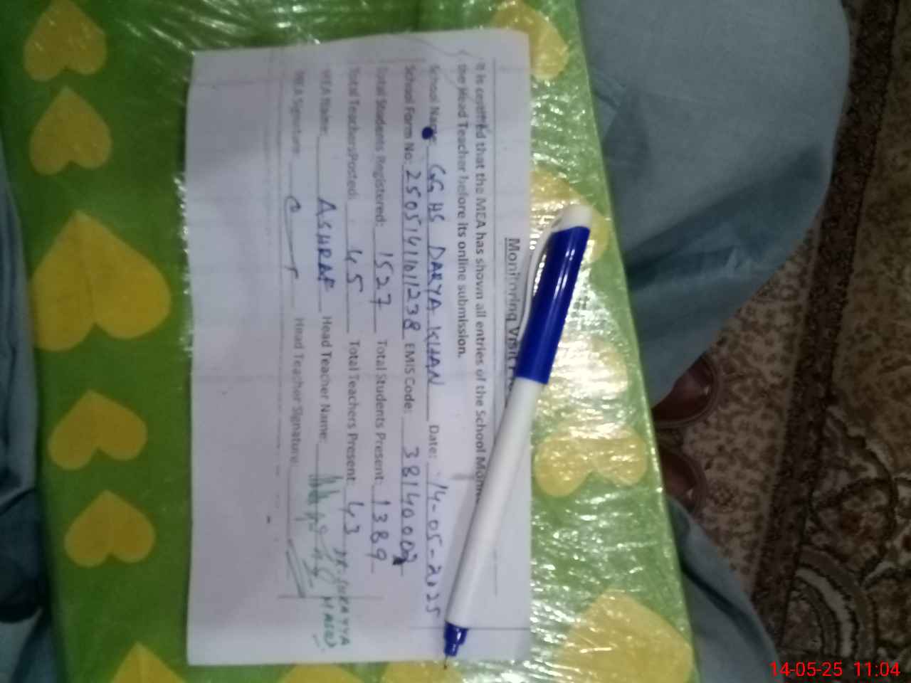 | EMIS Code: 38140002 | Name of School: GGHS DARYA KHAN | |||