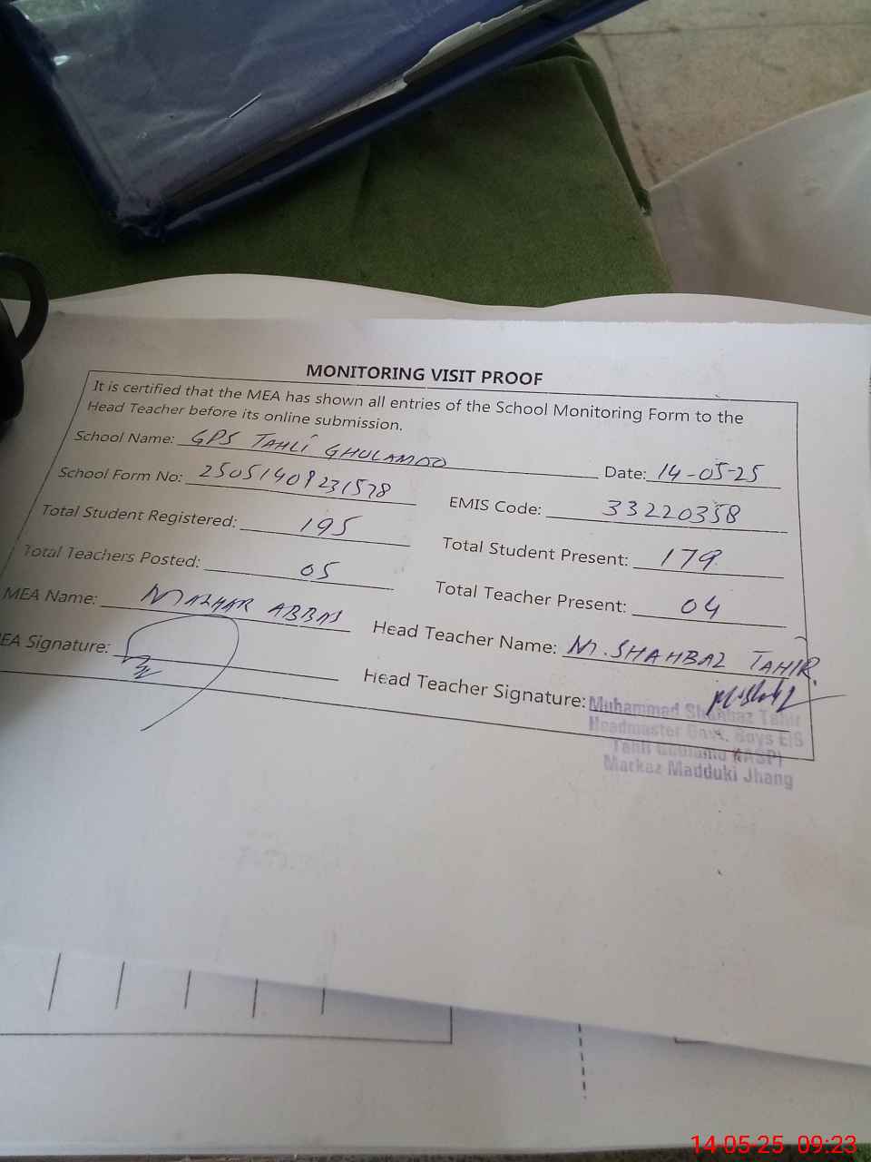 | EMIS Code: 33220358 | Name of School: GPS TAHLI GHULAMU | |||