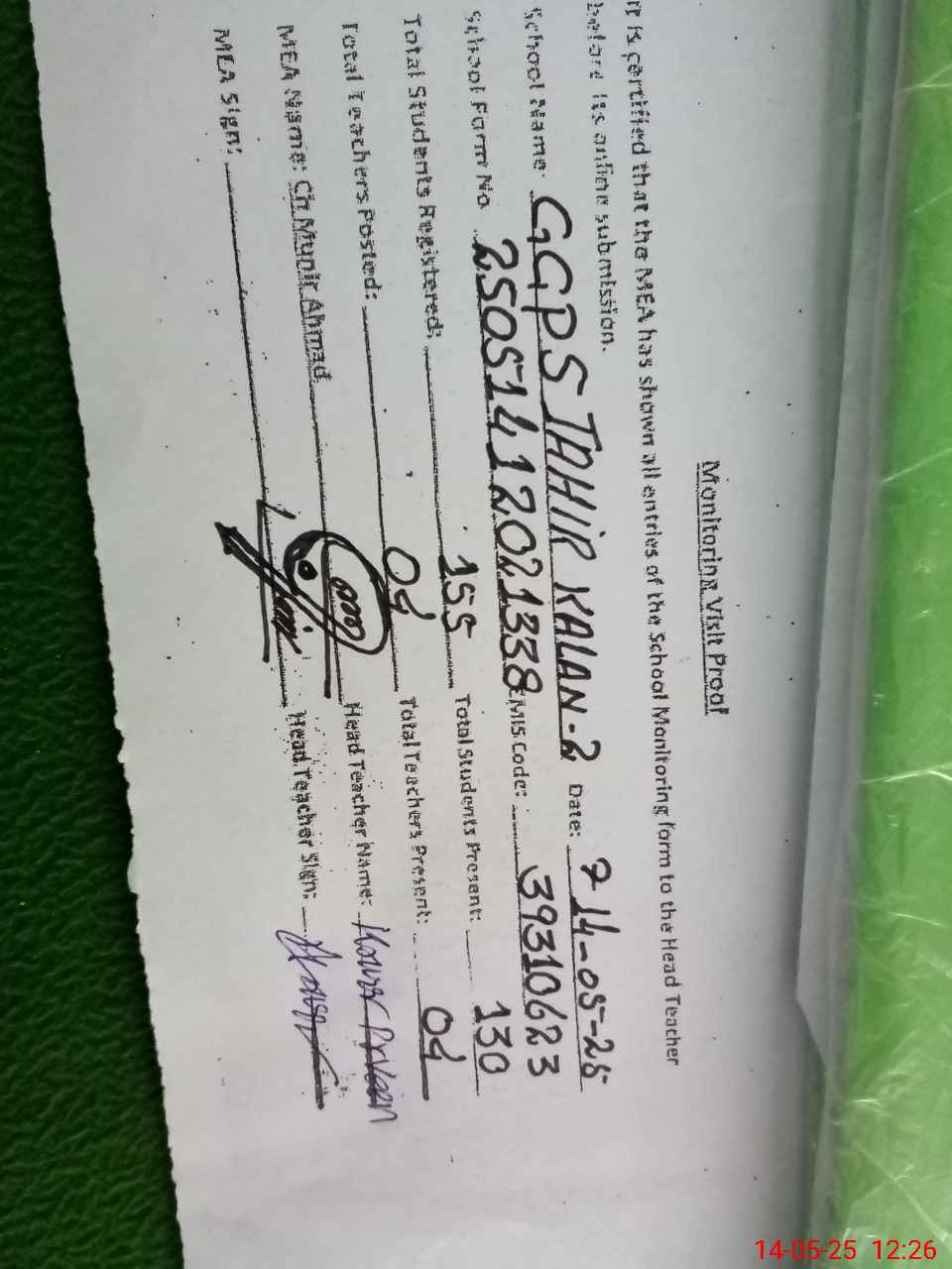 | EMIS Code: 39310623 | Name of School: GGPS TAHIR KALAN NO. 2 | |||