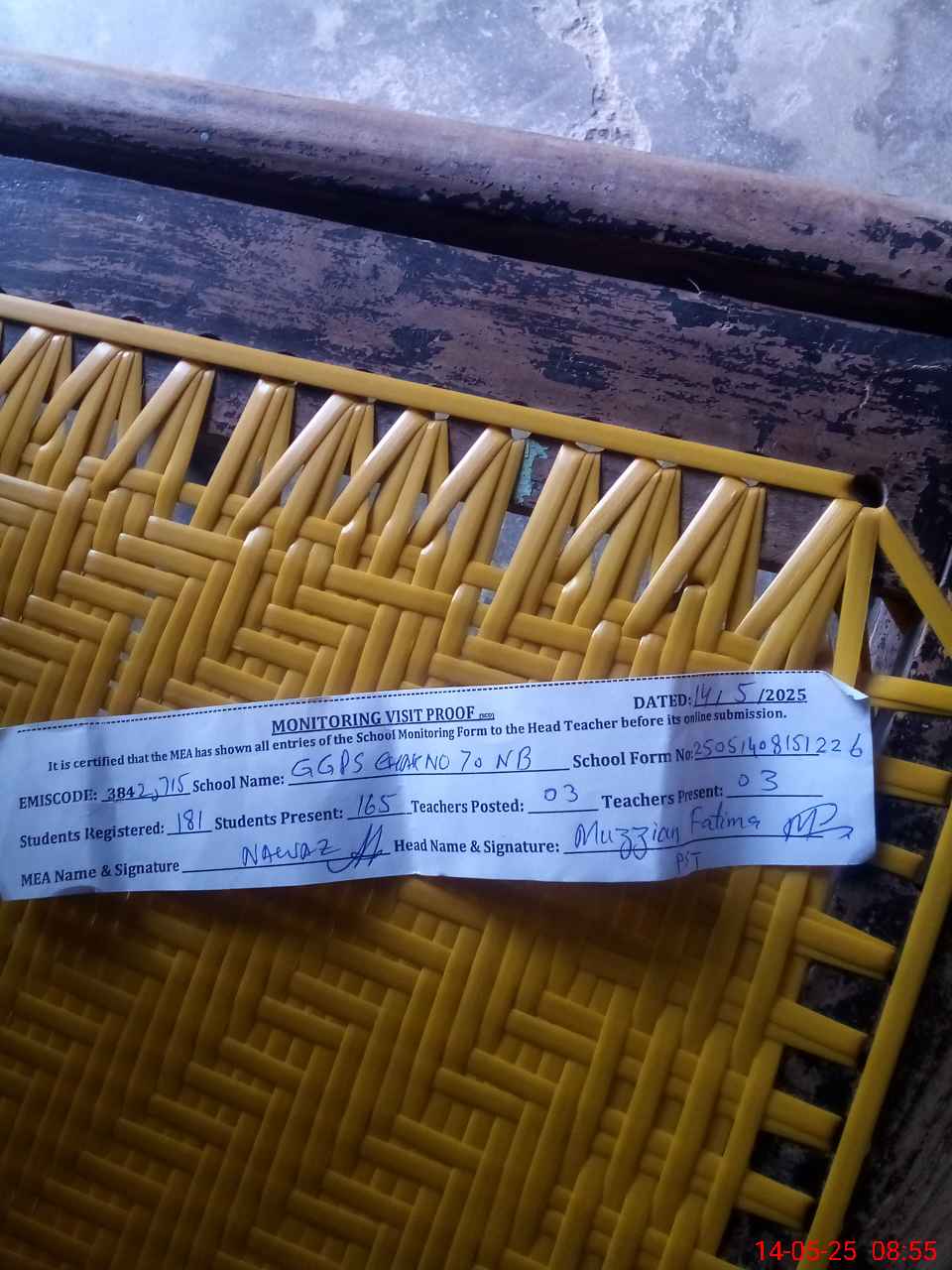 | EMIS Code: 38420715 | Name of School: GGPS CHAK NO.70 NB | |||