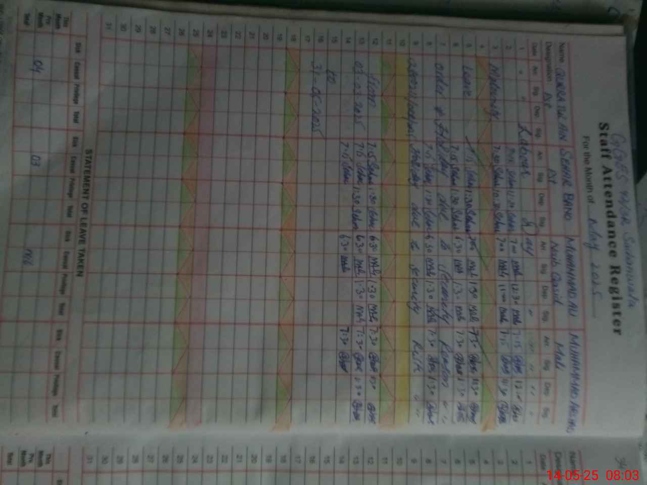 | 35**** | Pa**** Ak**** | SST | Regular | 0 | 0 | 0 | 0 | 0 | 0 | 0 | 0 | 0 | Exam Duty |