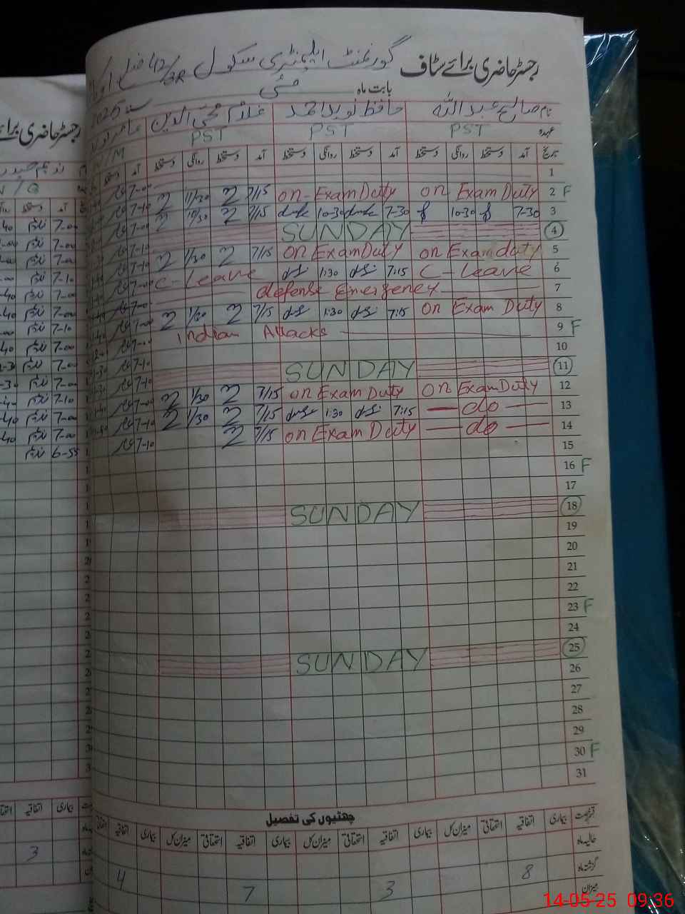 | 35**** | Sa**** Ab**** | 1 | 1 | 0 | 0 | 0 | 0 | 0 | 0 | 0 | 0 | 0 | Exam Duty |