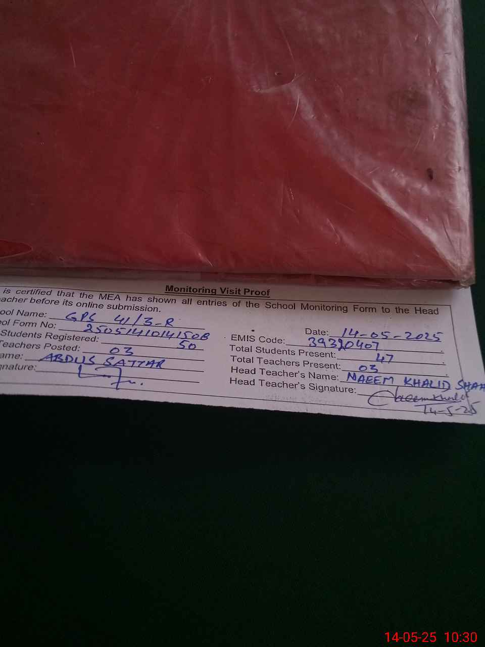 | Certified that this School was Inspected by the Undersigned MEA/DMO Today and the Information Stated Above is as Per Record. | |||||