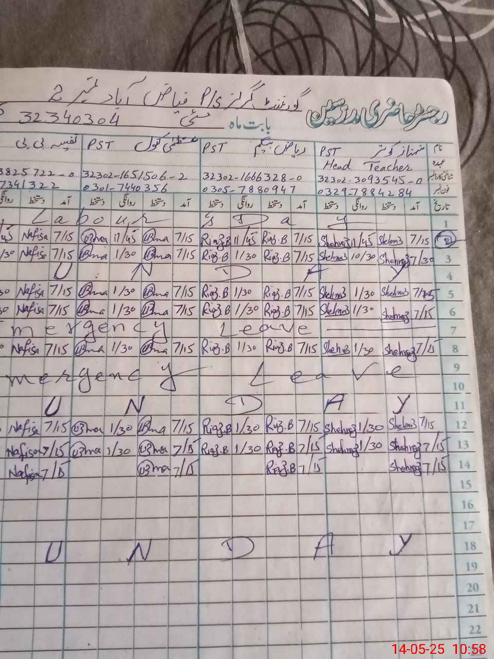 | Remarks (Use Separate Page if Required): Sohara Khan peon is a temporary adjustment in school is a present | |||||