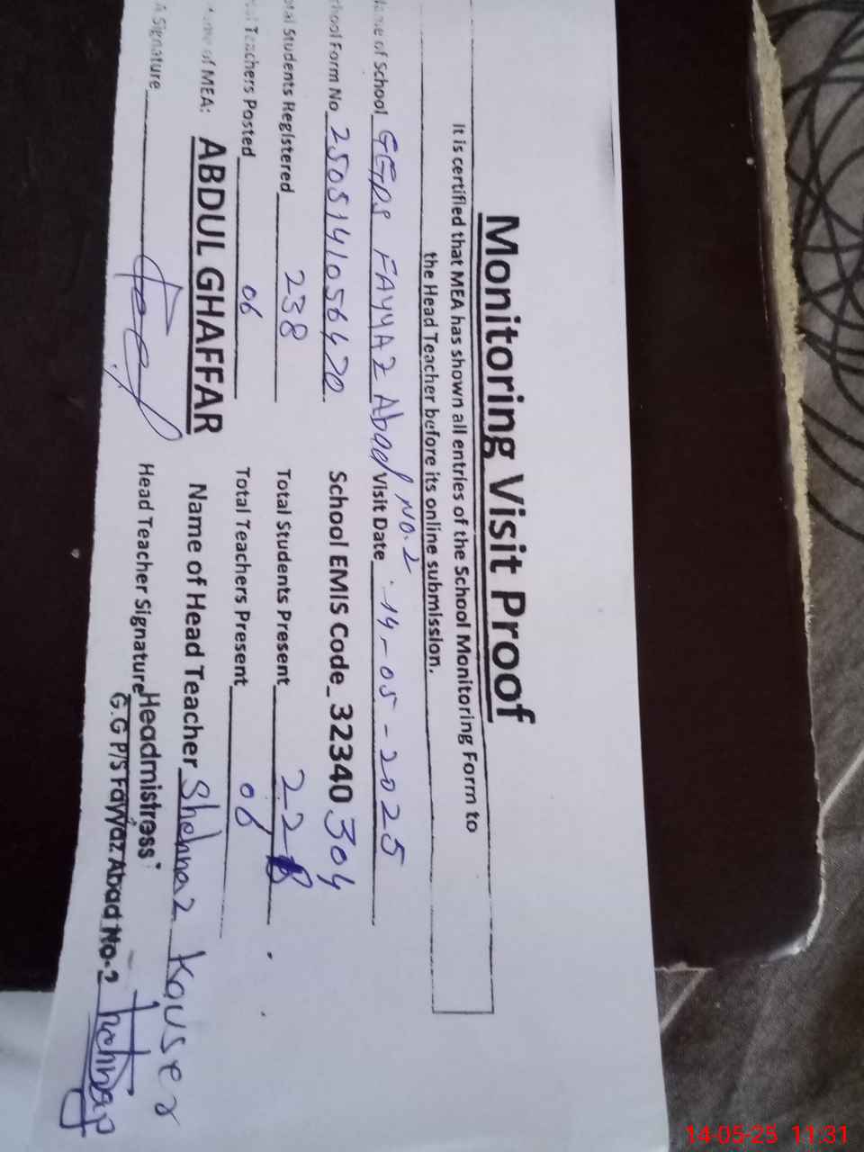 | EMIS Code: 32340304 | Name of School: GGPS FAYYAZ ABAD NO.2 | |||