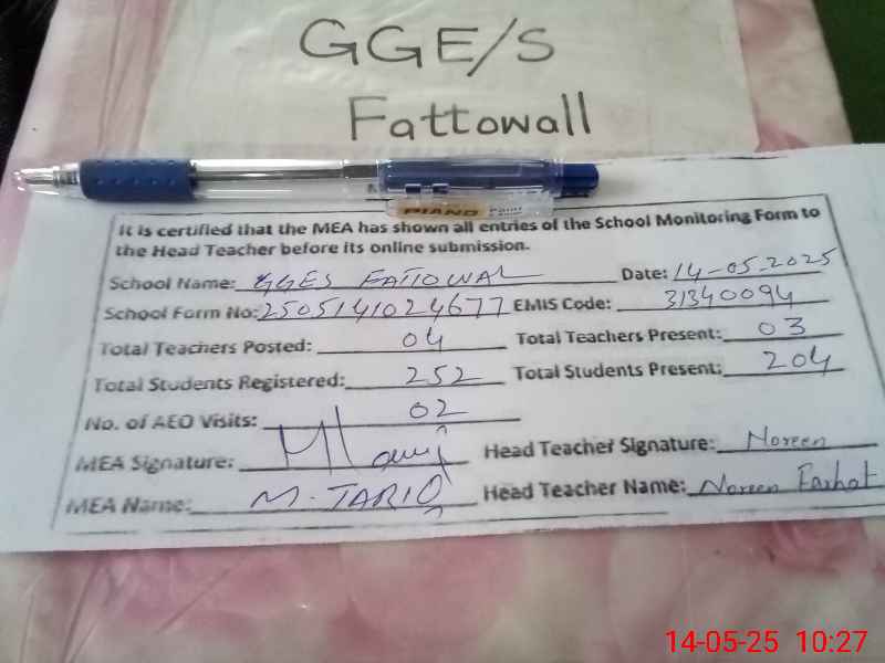 | Name: No**** Fa**** Designation: (School Headmaster's/Headmistress's) EST SCI Phone/Cell Number: 03**** |