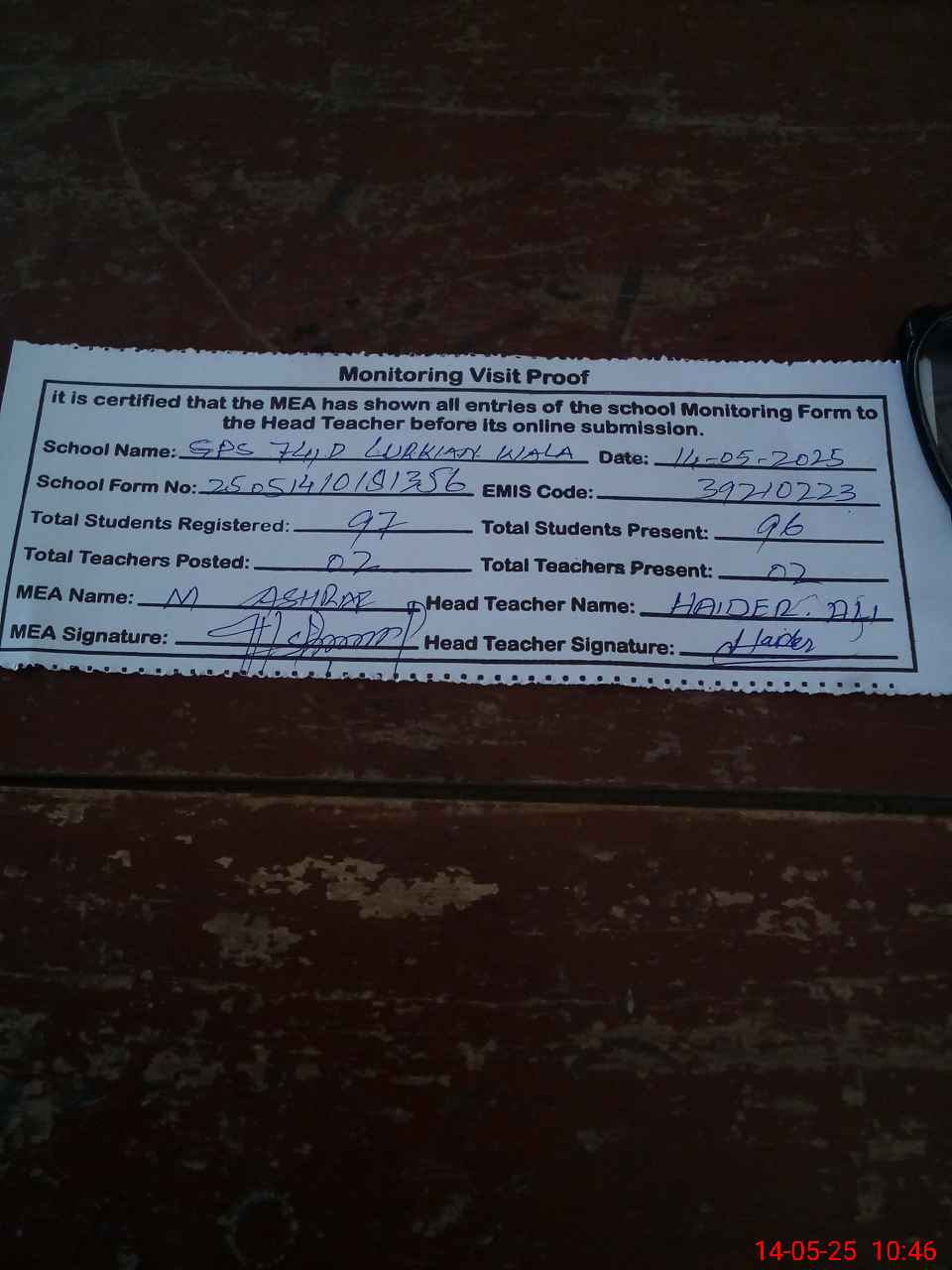 | EMIS Code: 39210223 | Name of School: GPS 74 D LURKIAN WALA | |||