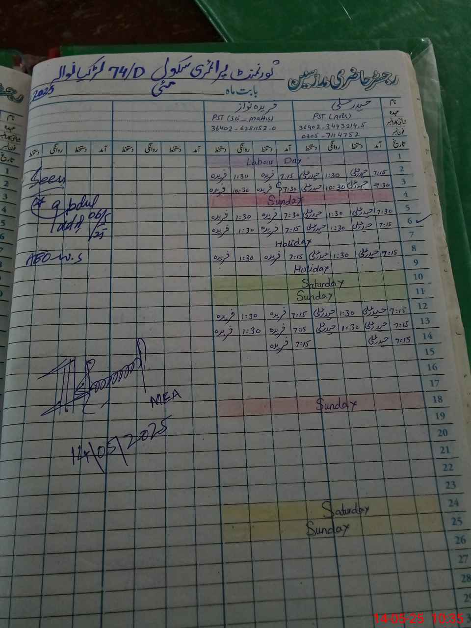 | Name: HA**** AL**** Designation: (School Headmaster's/Headmistress's) PST Phone/Cell Number: 03**** |