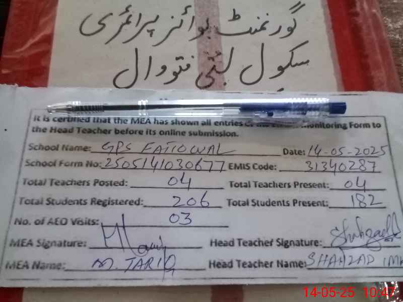 | Attendance Register | Head Teacher | MEA with School | Visit Proof |