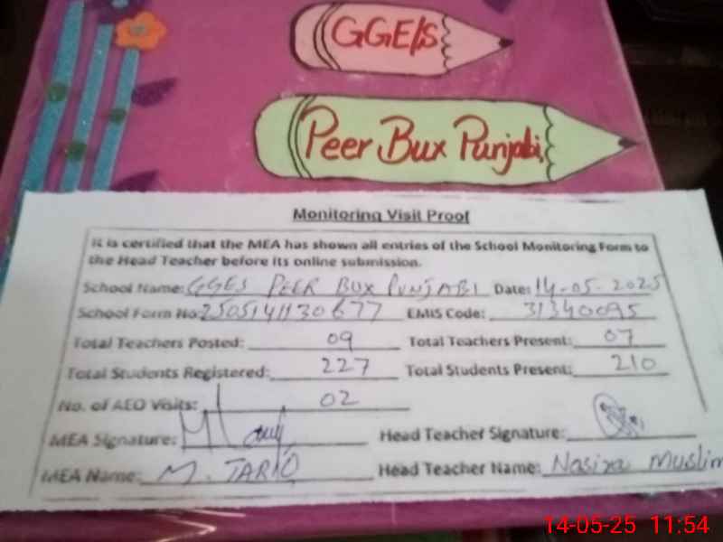 | EMIS Code: 31340095 | Name of School: GGES PEER BUKHASH PUNJABI | |||