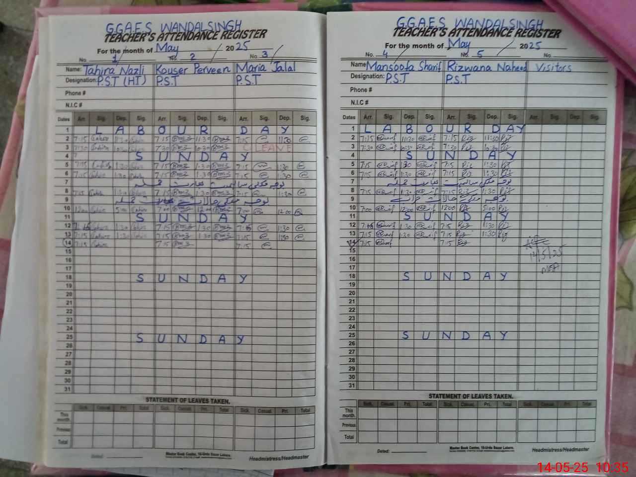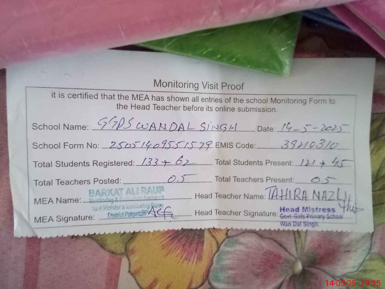 | Attendance Register | Head Teacher | MEA with School | Visit Proof |