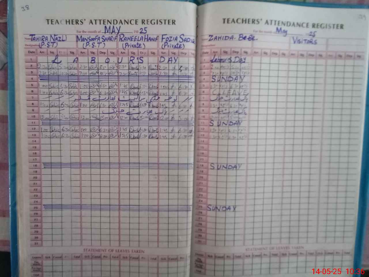 | Leave | Duty | Absent | Maternity | Medical | Ex- Pak |