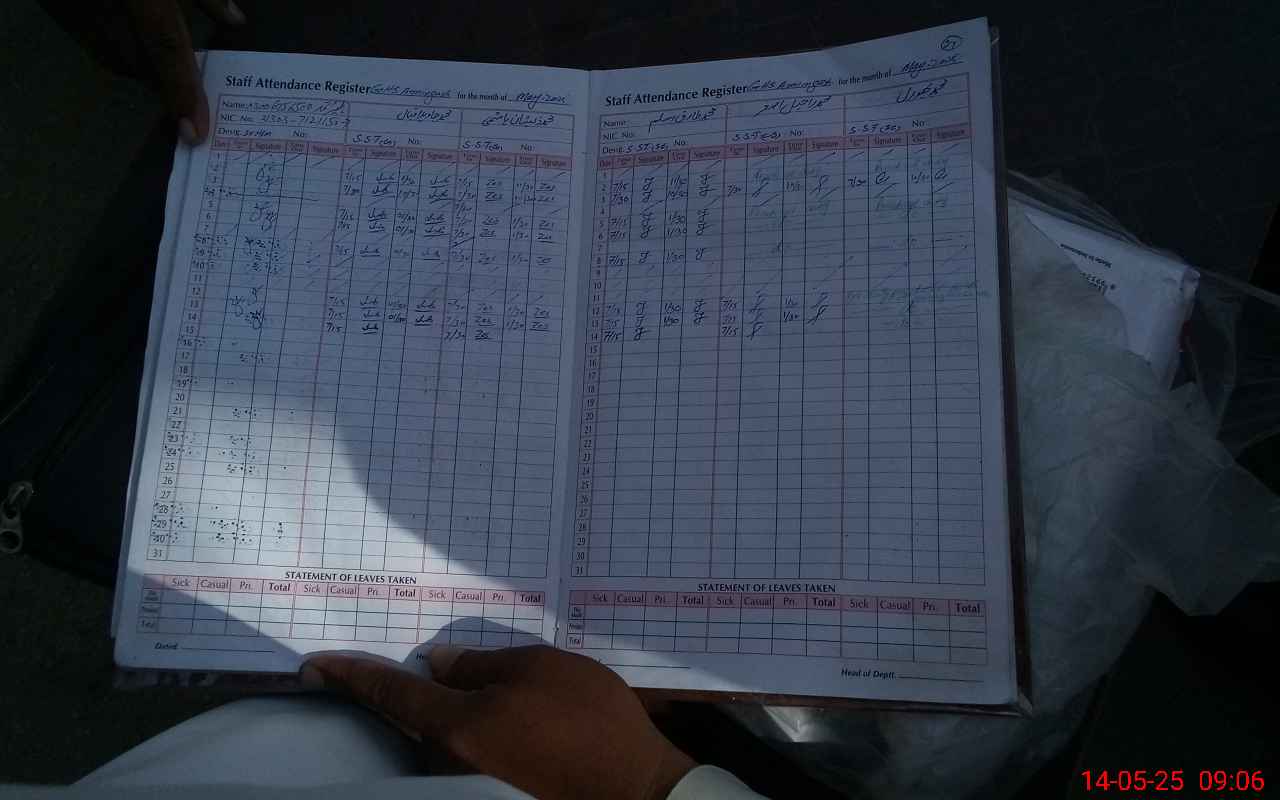 | CNIC | Full Name | Designation | R/C | Absence During Last Calender Month |