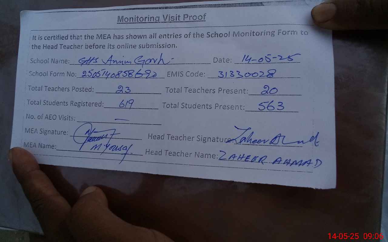 | EMIS Code: 31330028 | Name of School: GHS AMIN GARH | |||