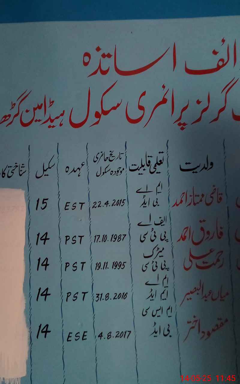 | District: RAHIMYAR KHAN | Tehsil: RAHIMYAR KHAN | Markaz: AMIN GARH - FEMALE | Level: Primary | |