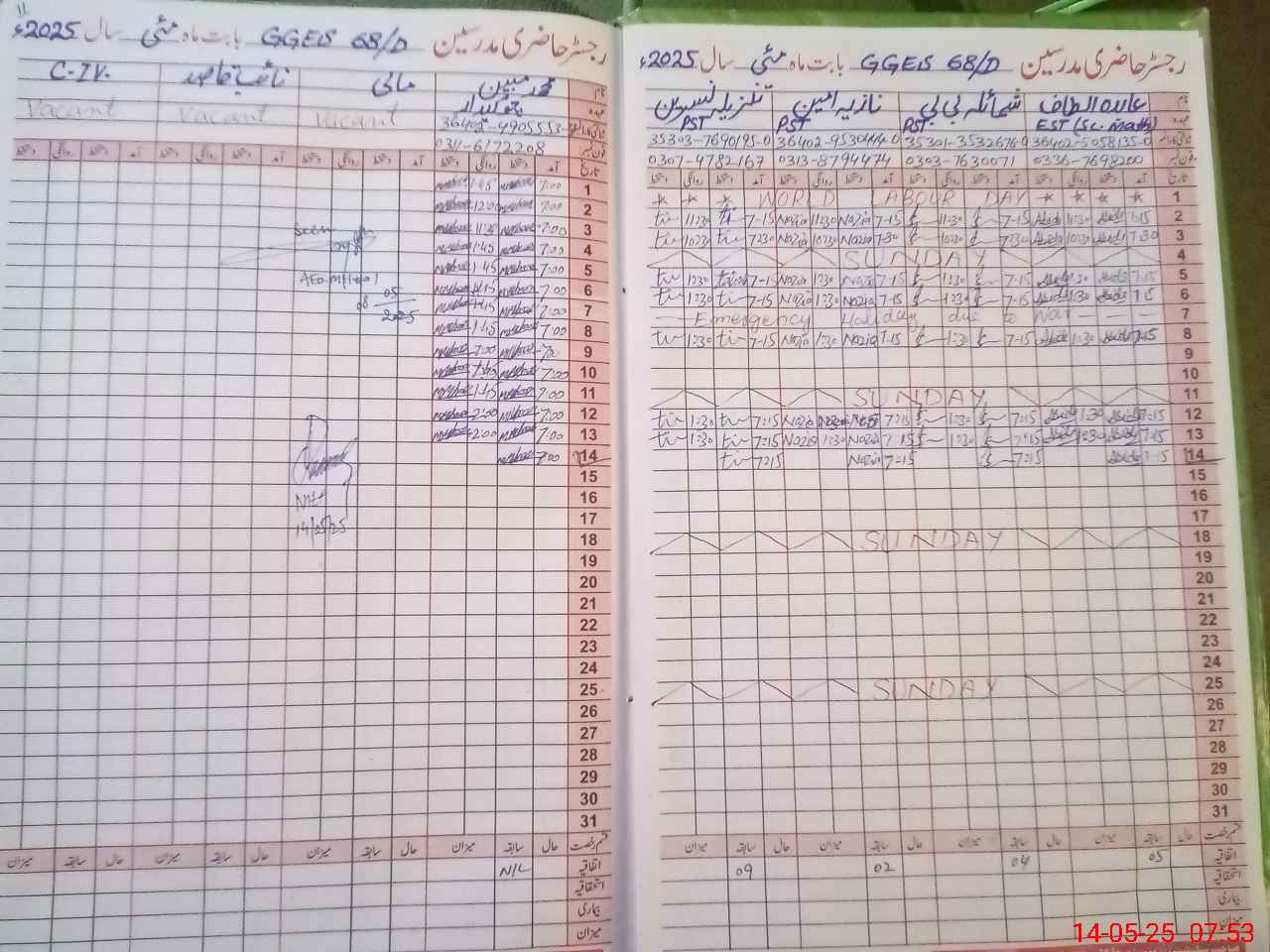 | Monitoring Date: 14-05-2025 | Start Time: 14-05-2025 07:45 AM | End Time: 14-05-2025 08:54 AM | Name of MEA: AM**** UL**** | |